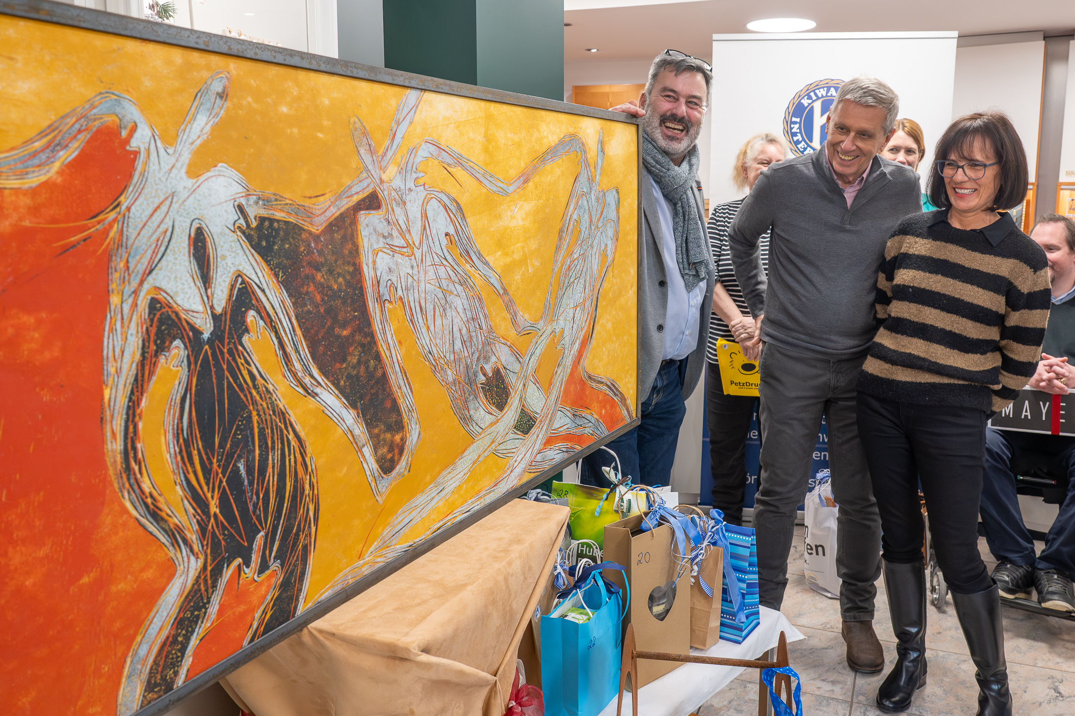 Ulrike Heller-Kotric (in Vertretung der Präsidentin) bedankte sich als Klubsektretärin bei allen Anwesenden und Käufern, denn „durch ihre Unterstützung können wir in der Region Kinder und Familien unterstützen; getreu dem Kiwanis-Moto Wir bauen den Kindern eine Brücke in die Zukunft.“ KC-Präsident Martin Skorjanz bedankte sich weiters bei allen Sponsoren zu deren „freundlicher Unterstützung unseres Projektes; viele davon helfen dankenswerterweise bereits seit Jahren. Ein großes Danke auch an die Künstlerin für die Bereitstellung ihres Werkes“.
