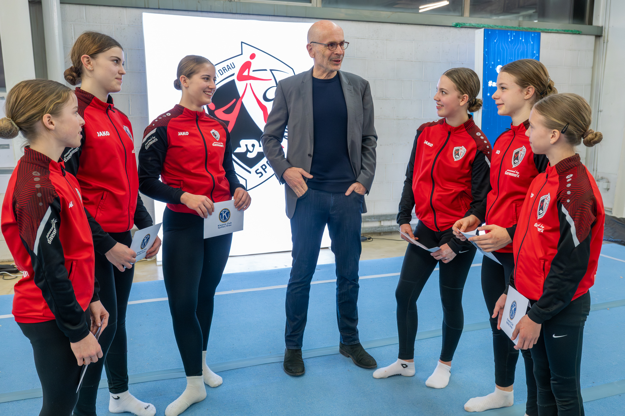 Unsere Klub hat erstmals höchst sportlichen Nachwuchstalenten eine Unterstützung zukommen lassen: Den Akrobatinnen der Sportgemeinschaft Spittal hat unser Präsident Martin Skorjanz eine Reisekosten-Unterstützung zu ihren Auftritten in In- und Ausland übergeben. Dabei konnte er sich vom Trainingsaufwand und dem Können der Mädchen überzeugen.